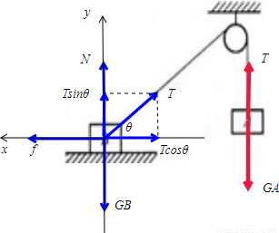 B:因为两次B物体均静止,所以B物体受力平衡,y方向有:N+Tsinθ=GB,当B物体稍向左移一点,θ变小,N=GB-Tsinθ就会变大.故B错误.