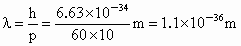 运动员的德布罗意波长太短,所以我们观察不到运动员的波动性 设一运动员质量为 60kg,速度为10m/s,则他的德布罗意波长为 |