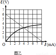 代入得到电阻R两端的电压U=6-750I,在乙图上作出U-I图象,如图,两图象的交点即为R的工作状态,则得U=3V.
