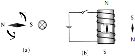画出下面右图(a)中放在通电直导线旁边小磁针的偏转方向;(b)中电路开关合上后的磁感线的方向和标出小磁针的N、S极与它们的指向.
