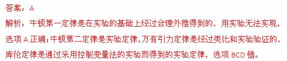 (2013邯郸摸底)物理学是一门以实验为基础的学科,物理定律就是在大量实验的基础上归纳总结出来的。但有些物理规律或物理关系的建立并不是直接从实验得到的,而是经过了理想化或合力外推,下列选项中属于这种情况的是( )