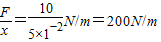 由图当弹簧伸长或压缩5cm时,F=10N