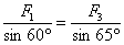 选两杆交点O为研究对象,O点的受力如右下图所示:其中F3表示悬吊重物的绳子对O点的拉力,其大小等于重物的重量. 由拉密定理得: