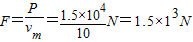 又因为汽车匀速行驶,有F=f,所以f=1.5×103N