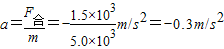 (2)关闭油门后,汽车将作匀减速运动,根据牛顿第二定律F合=ma,可得