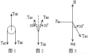 以O点为对象,受力分析如图2,TAO=TBO,则有