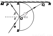 ,直径AB与屏幕MN垂直并接触于A点。激光a以入射角i=60°射向玻璃砖圆心O,结果在屏幕MN上出现两光斑,求两光斑之间的距离L。