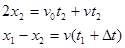 一辆客车在某高速公路上行驶,在经过某直线路段时,司机驾车做匀速直线运动.司机发现其正要通过正前方高山悬崖下的隧道,于是鸣笛,经时间t1后听到回声;听到回声再行驶△t时间后,司机第二次鸣笛,又经时间t2 后,听到回声.已知声音在空中的传播速度为v0.