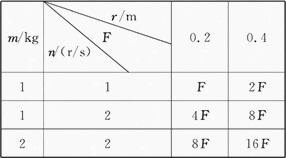 在探究向心力与质量、转速和半径的关系的实验中,得到如下数据.试根据表中数据分析说明向心力的大小与哪些因素有关.| m/kg | r/m F n/(r/s) |