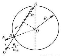 如图所示,一个重为G的小球套在竖直放置的半径为R的光滑圆环上,一个劲度系数为k,自然长度为L(L<2R)的轻质弹簧,一端与小球相连,另一端固定在大环的最高点,求小球处于静止状态时,弹簧与竖直方向的夹角φ.