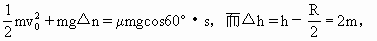 ,半径R=2.0m,一个物体在离圆弧底部的高度为h=3.0m处以4m/s的速度沿斜面向下运动,若物体与斜面间的动摩擦因数