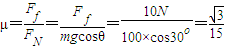 (3)垂直于斜面方向上由力的平衡可求出弹力;于由动摩擦力公式可求得动摩擦力因数.