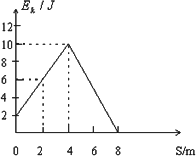 质量M=1 kg的物体,在水平拉力F的作用下,沿粗糙水平面运动,经过位移4 m时,拉力F停止作用,运动到位移是8 m时物体停止,运动过程中Ek-S的图线如图所示.求: