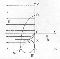 在xoy平面内,第Ⅲ象限内的直线OM是电场与磁场的边界,OM与负x轴成45°角。在x<O且OM的左侧空间存在着负x方向的匀强电场E,场强大小为32N/C,在y<0且OM的右侧空间存在着垂直纸面向里的匀强磁场B,磁感应强度大小为0.1T,如图所示。一不计重力的带负电的微粒,从坐标原点O沿y轴负方向以