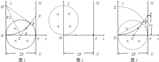 (2)作出粒子运动轨迹如图1所示.粒子在B点射出,磁场中转过的偏向角为θ,由图可得: