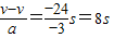 知,初速度v=24m/s,加速度a=-3m/s2.根据速度时间公式v=v+at得,t=