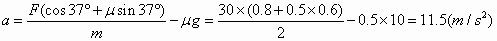 (1)物体做匀加速运动 ∴ 由牛顿第二定律 ∴ (2)设 以大小为 ∴ 由于匀加速阶段的末速度即为匀减速阶段的初速度,因此有 ∴ ∴ |