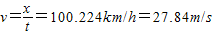小时,全程的平均速度是:27.84m/s.