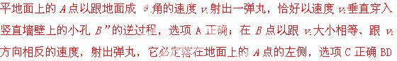 【解析】:在B点以跟v2大小相等、方向相反的速度射出弹丸,是“在水