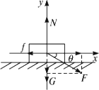 如图所示,物体受四个力而处于静止状态,所以物体所受的摩擦力为静摩擦力,应根据平衡条件求.建立如图所示坐标轴,将力F分解在坐标轴上.x轴方向上的合力为零,所以Fcosθ-f=0,即f=Fcosθ;在y方向上的合力也为零,N-Fsinθ-G=0,可以得出N=Fsinθ+G.但由于不是滑动摩擦力,所以f≠μN.