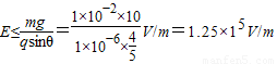 V/m,由题意可知,θ>0,所以E>7.5×104V/m