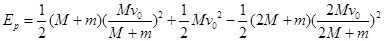 在光滑的水平面上,有两个质量都是M的小车A和B,两车间用轻弹簧相连,它们以速度v0向右匀速运动,有一质量为m的铁钉从高处自由落下,正好嵌入A车,在两车继续向前运动的过程中,弹簧的弹性势能的最大值是多少?![]()