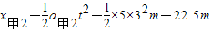 此时甲乙相距△x=x甲1+s-x乙1=45+100-90m=55m