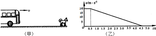 一辆长途客车正在以20m/s的速度匀速行驶.突然,司机看见车的正前方x=33m处有一只狗,如图(甲)所示,司机立即采取制动措施.若从司机看见狗开始计时(t=0),长途客车的“速度-时间”图象如图(乙)所示.(1)求长途客车从司机发现狗至客车停止运动的这段时间内前进的距离;