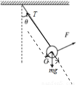 【答案】分析:本题关键根据三力平衡条件判断,三个力中重力大小方向都一定,绳子拉力方向一定,大小未知,拉力F大小方向都未知,然后根据平衡条件,结合平行四边形定则分析.