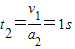0=v1+(-a2)t2