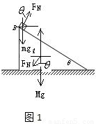 解:图1为A、B物体受力图,用ax表示物体A的加速度a在水平方向的分量,ay表示物体A的加速度a在竖直方向的分量,aM表示物体B的加速度.根据图2和牛顿定律,有