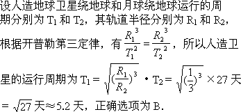 ,设月球绕地球运动的周期为27天,则此卫星的运转周期大约是( )