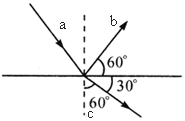 如图,a、b、c分别为入射波、反射波、折射波,已知入射波波速v=10m/s,入射角