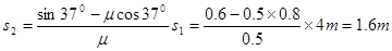 如图所示,斜面倾角370,斜面与平面间由一段圆弧连接,物体在离斜面底端4米处由静止滑下,若物体与斜面和水平面之间的动摩擦因数均为0.5,求物体能在水平面上滑行多远?(g=10m/s2,sin37°=0.6)