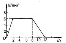 如图为一高层电梯上升过程的υ-t图象.电梯在12s内上升的高度为_______m.这过程中质量为50kg的人对电梯的最大压力为_______N,最小压力为_______N.![]()