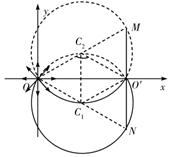 (3)打在荧光屏正面O点的粒子的圆弧轨迹见图(圆心在