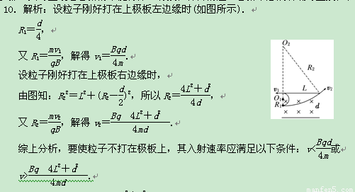 (11分)如图所示,长为L、间距为d的平行金属板间,有垂直于纸面向里的匀强磁场,磁感应强度为B,两板不带电,现有质量为m、电荷量为q的带正电粒子(重力不计),从左侧两极板的中心处以不同速率v水平射入,欲使粒子不打在板上,求粒子速率v应满足什么条件? 图10