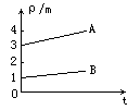 图给出了同种且质量相等的两部分气体变化的等容线,由图中给出的条件可知,当t=273℃时,气体A、B的体积之比 =____∶____.