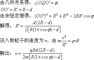 (2)如果粒子经纸面内Q点从磁场中射出,出射方向与半圆在Q点切线方向的夹角为φ(如图).求入射粒子的速度.