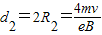 【答案】分析:质子和α粒子在磁场中做匀速圆周运动,洛伦兹力提供向心力,写出它们的动力学方程,即可求得它们的半径,P、Q两点间的距离是它们运动的直径的差;