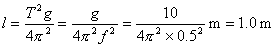 | 由图象可以看出单摆的固有频率为0.5 Hz,故由单摆的周期公式