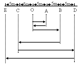 运动场的直线路道上,每隔5m放一空瓶,运动员进行折返跑训练时,从中间某一瓶出发,跑向右侧最近空瓶,将其推倒后返回,再推倒出发点处的瓶子,之后再折返到右面的空瓶,再向左,如此反复,当他推倒第6个空瓶时,他跑过的路程是多少?位移大小是多少?