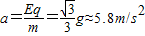 答:(1)刚加上电场的瞬间,小球加速度的大小5.8m/s2;