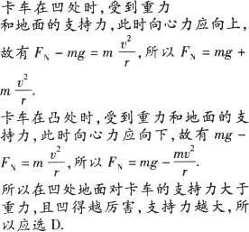 一辆卡车在丘陵地带匀速率行驶,地形如图所示,由于轮胎太旧,途中容易爆胎,爆胎可能性最大的地段应是( )