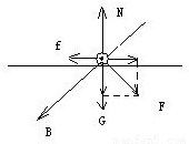 【答案】分析:带电金属杆进行受力分析,除重力、支持力外、在磁场中受到安培力,还有静摩擦力,四力处于平衡状态.根据磁场的方向由左手定则来确定安培力的方向,从而对安培力进行力的分解,由平衡可得支持力、摩擦力的大小.