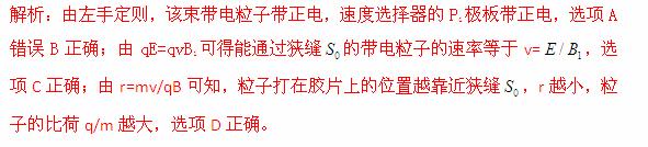 (2013天津滨海五校联考)速度相同的一束粒子由左端射入质谱仪后的运动轨迹如图所示,则下列相关说法中正确的是