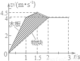 ´ð£º£¨1£©1s¡¢1.5s¡¢2s¡¢3sĩľ°åµÄËÙ¶ÈÒÔ¼°2s¡¢3sÄ©Îï¿éµÄËÙ¶È·Ö±ðΪ£ºv1=4m/s£¬v1.5=4.5m/s£¬v2=4m/s£¬v3=4m/s£¬v¡ä2=4m/s£¬v¡ä3=4m/s£»£¨2£©ÔÚÍ¬Ò»×ø±êϵÖÐ0¡«3sÄÚľ°åºÍÎï¿éµÄv-tͼÏóÈçͼËùʾ£¬0¡«3sÄÚÎï¿éÏà¶ÔÓÚľ°å»¬¹ýµÄ¾àÀëΪ2.25m£®