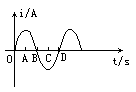 如下图所示是一交变电流的i-t图象,则该交变电流的有效值为( )![]()