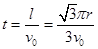 如图所示,半径为r的圆形空间内存在着垂直于纸面向外的匀强磁场,一个带电粒子(不计重力)从A点以速度v0垂直于磁场方向射入磁场中,并由B点射出,且∠AOB=120°,则该粒子在磁场中运动的时间为( )![]()