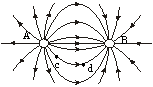 点电荷A、B周围电场线分布如图,c、d是同一电场线上两点,下列说法正确的是